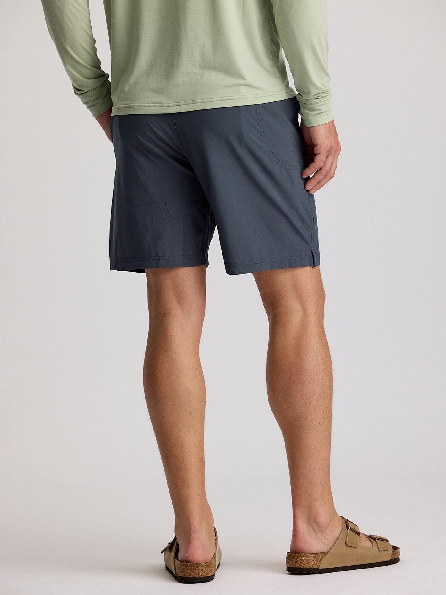 The Men's Breeze Short in Storm Cloud features ultra-lightweight, 4-way stretch fabric with quick-dry performance, UPF 50+ protection, and an elastic drawcord waistband built for both active days and lazy weekends.