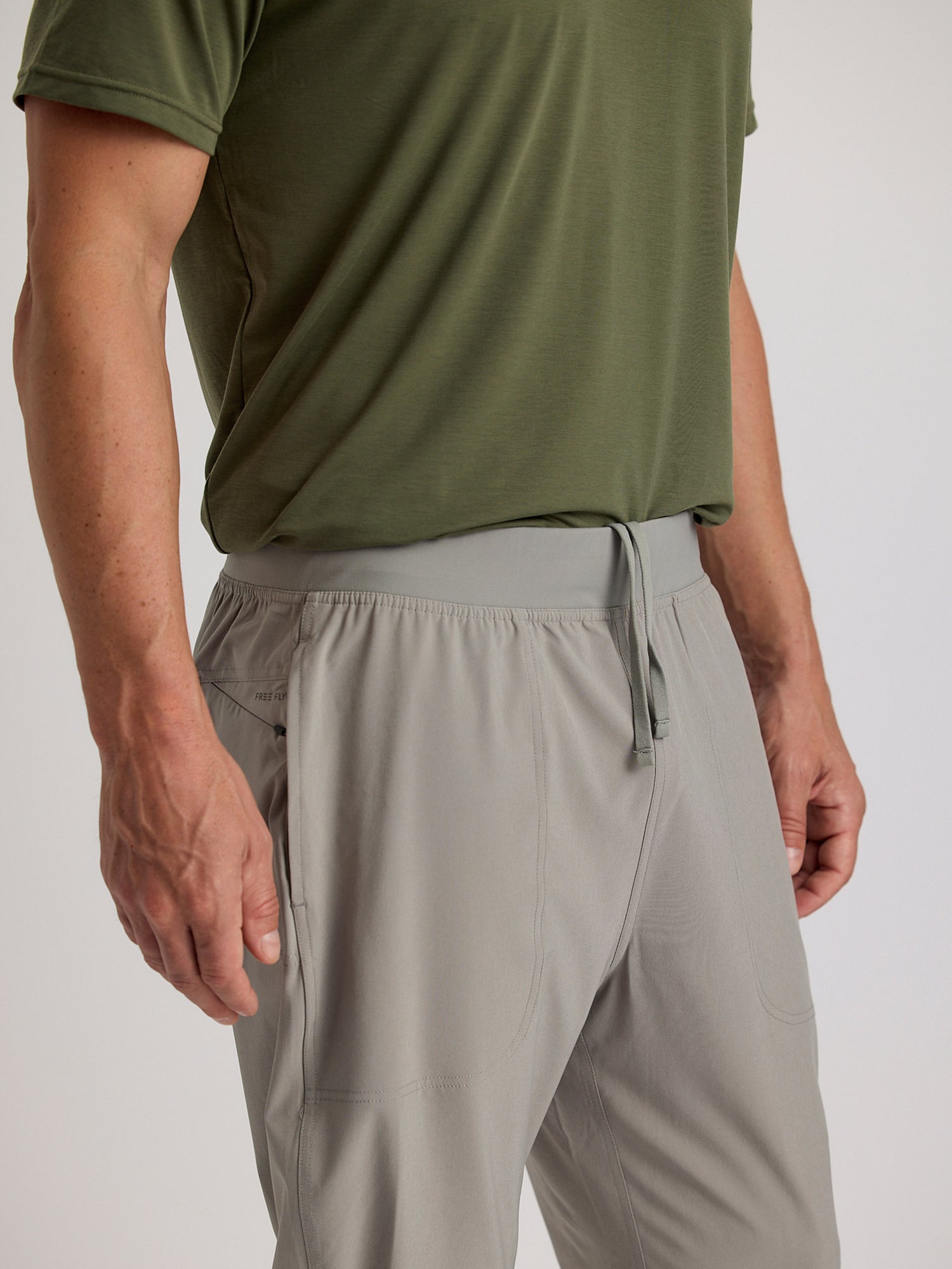 The Men's Active Breeze Jogger in Cement delivers lightweight, four-way stretch performance with a wide knit waistband, secure zip pocket, and tapered ankle cuff for effortless movement and modern comfort.
