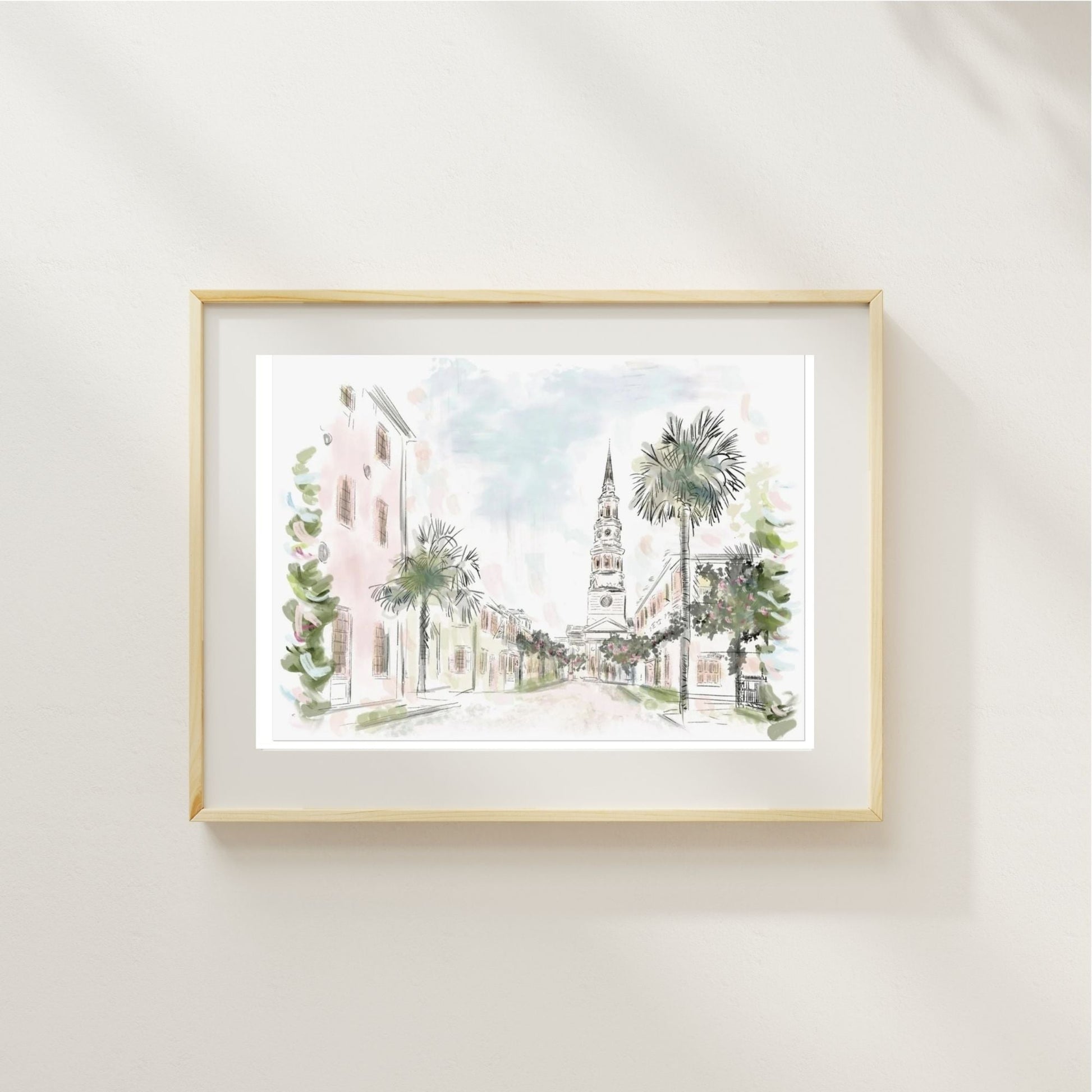 Capture the charm of the Holy City with this art print of Church Street in Charleston, SC. Featuring the historic architecture, cobblestone details, and timeless Southern character the street is known for, this piece beautifully reflects the city’s rich history and inviting atmosphere—perfect for Charleston lovers near and far.
