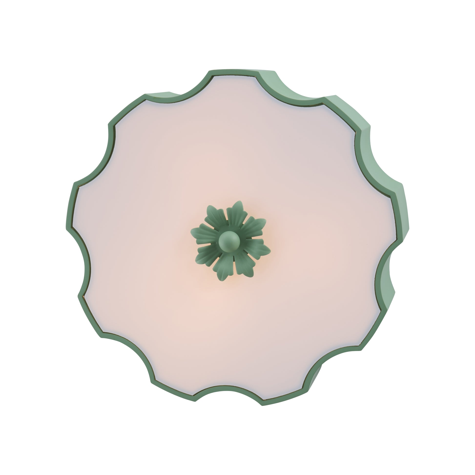 Add a touch of playful sophistication to your ceiling with the Fancy Wiggly Flush Mount. Its sculptural metal shade features a charming wavy silhouette, finished in a fresh painted green that brings character and dimension to any room. A frosted glass diffuser softens the light, casting a warm, inviting glow while the decorative finial adds a thoughtful design detail. Perfect for bedrooms, entryways, or cozy spaces, this fixture delivers both function and personality—bringing a refined pop of color and shape overhead.