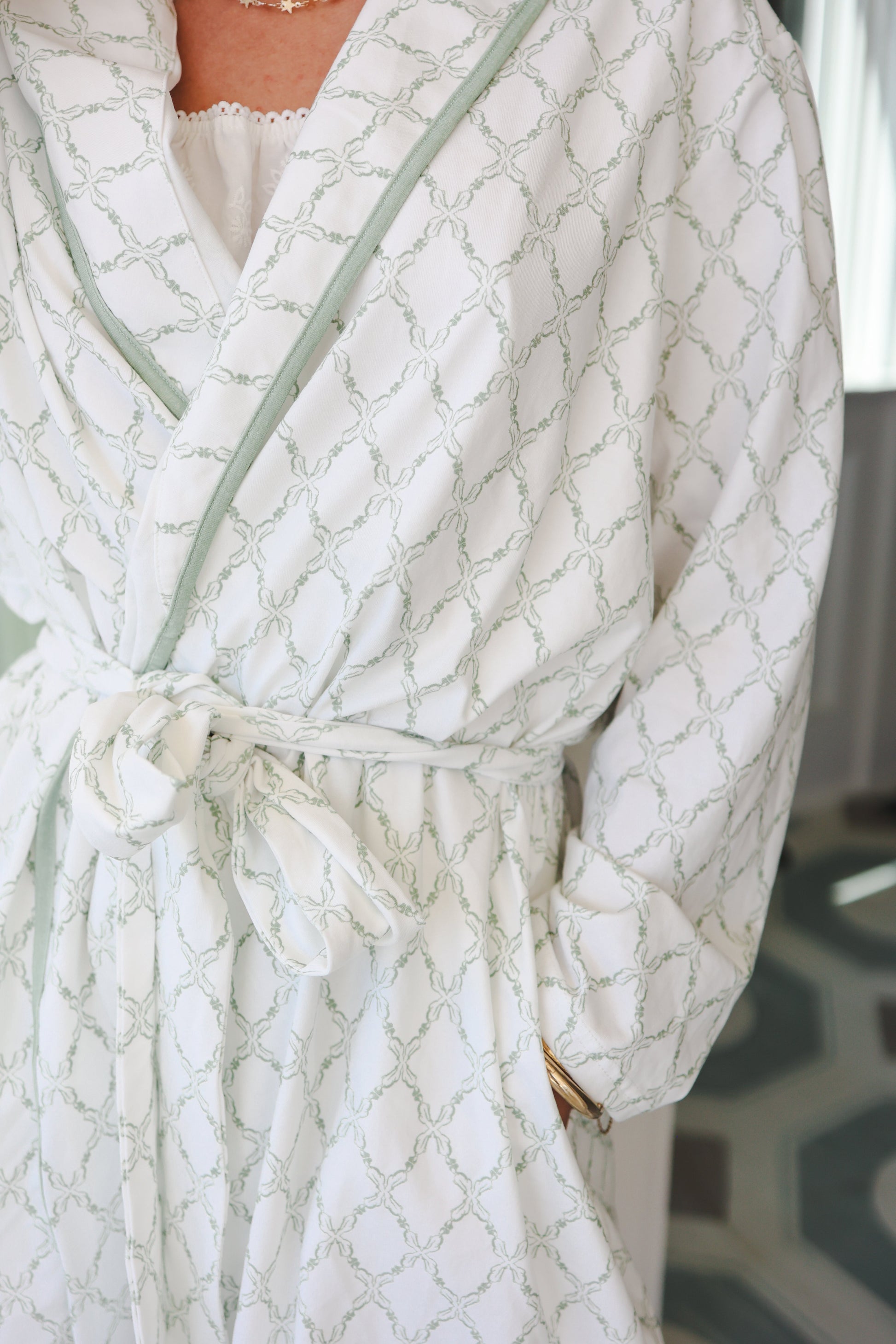 Created in celebration of Mother’s Day, this buttery-soft pima cotton robe features a custom print made from original artwork by Anne Darby Parker, Darling founder's mom. Finished with green trim, it’s lightweight and includes a detachable belt for the perfect fit.