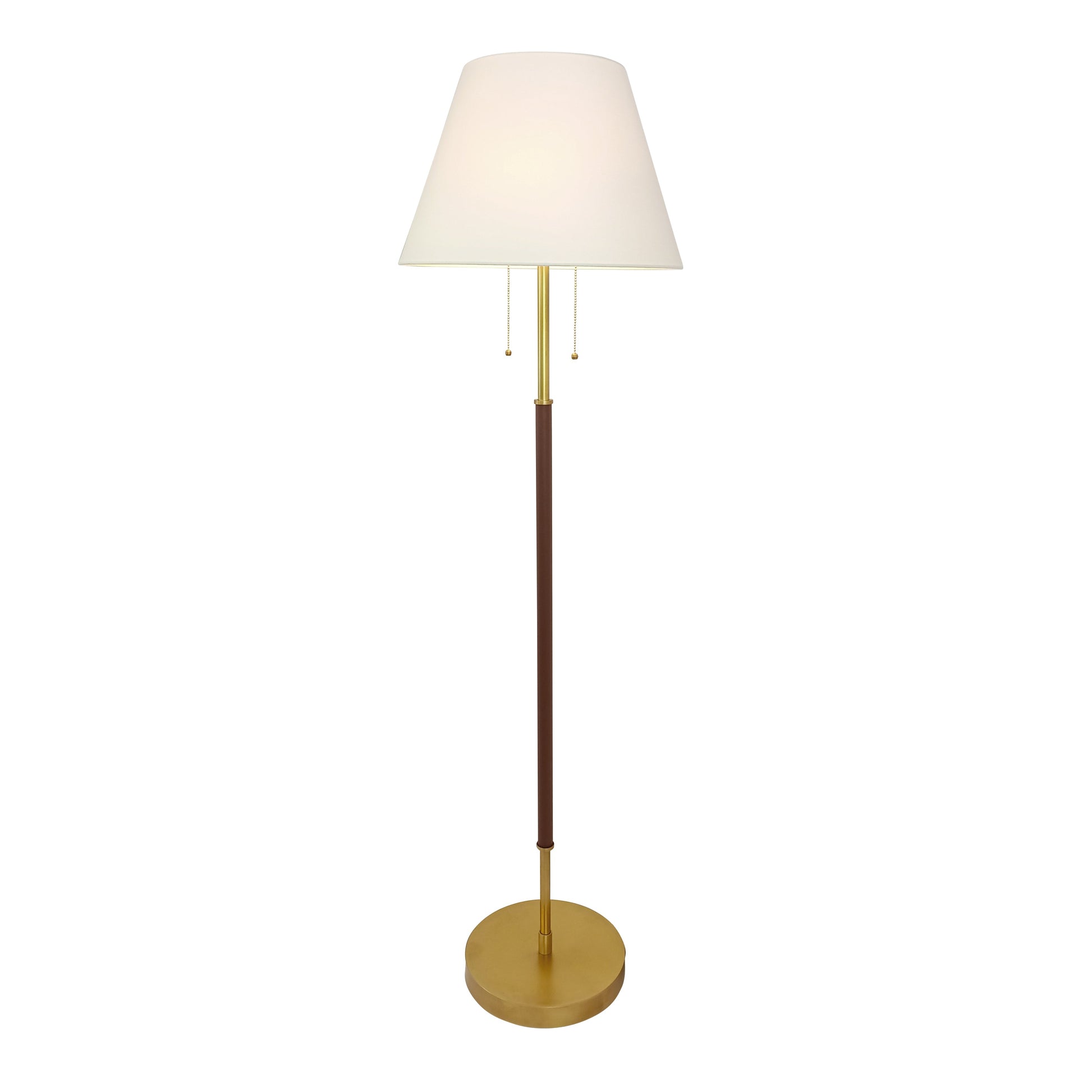 Sleek and versatile, the Skinny Mini Floor Lamp pairs a slim brass-accented frame with a crisp tapered shade. Perfect for living rooms, bedrooms, or reading nooks, it adds timeless style in a compact silhouette. Designed by Amanda Lindroth for Chelsea House.