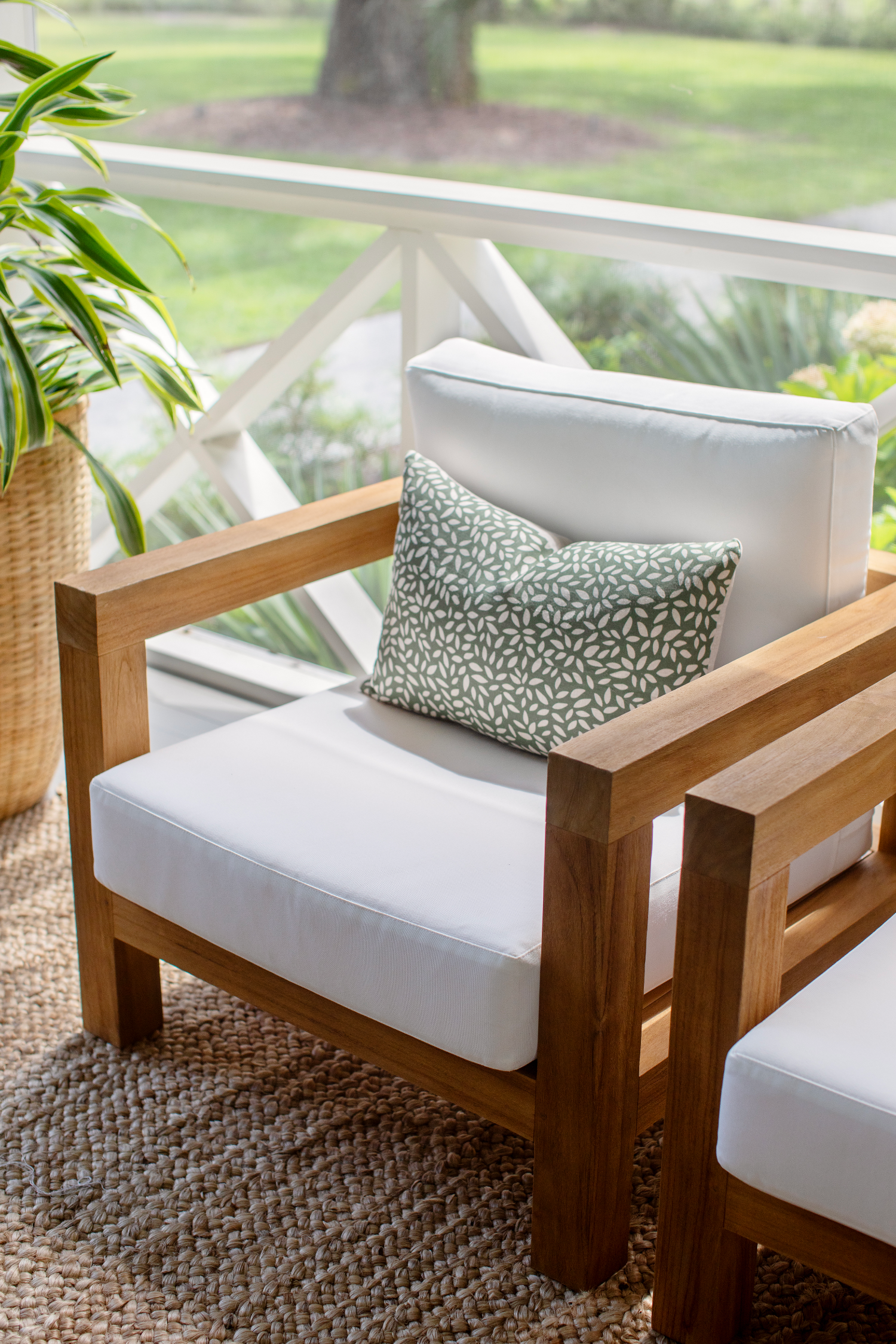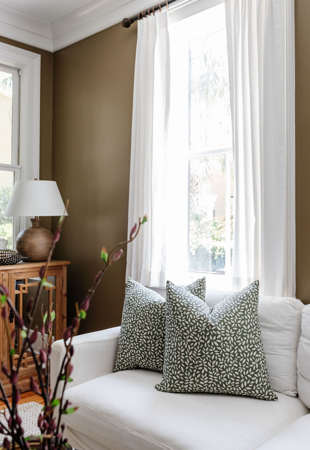 Inspired by neighboring Wadmalaw Island, this pattern features small leaf-like shapes that symbolize the island's vast acres of native tea plants. The simple motifs pay homage to the tranquil tea fields, capturing the beauty of the island’s lush landscape and its rich agricultural heritage. A favorite among interior designers for layered pillow collections and custom drapery.